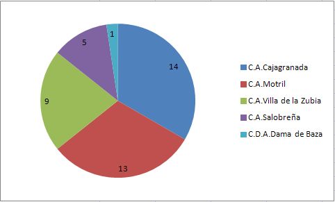 El club ajedrez Cajagranada es el club que mas puntos aporta a esta clasificación, aportando mas del 53% de los puntos en la clasificación en la que conseguimos el 4º puesto aportando 26.5 de los 49 y mas del 76% de los puntos que nos otorgan el 3ª puesto, aportando nada mas y nada menos que 35 de los 46 necesarios para conseguirlo.